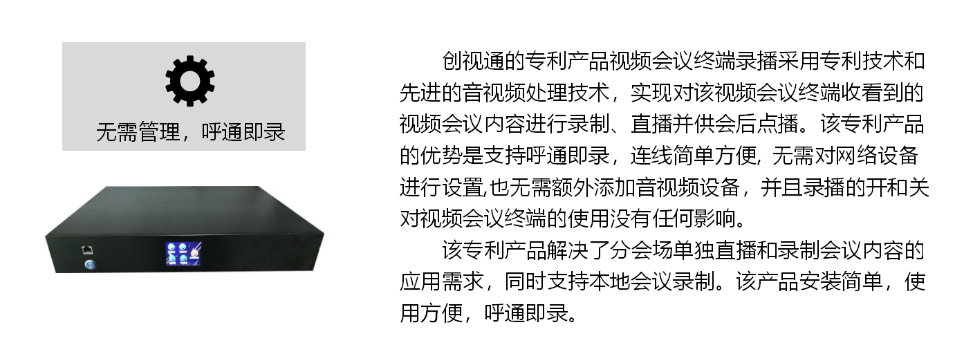 此時我們僅僅需要配置一臺創視通 視頻會議終端錄播 即可實現會議錄制。