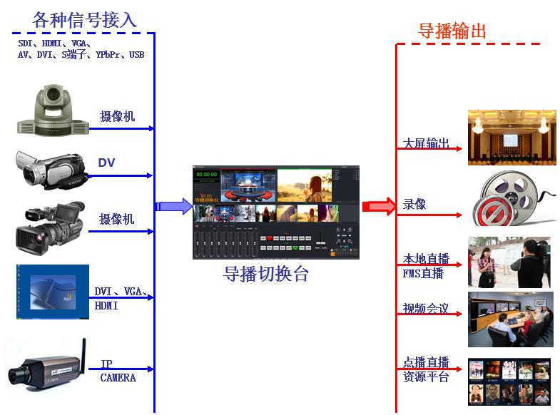 · 支持導播技術、帶有預監、特效、自動跟蹤等多種功能。