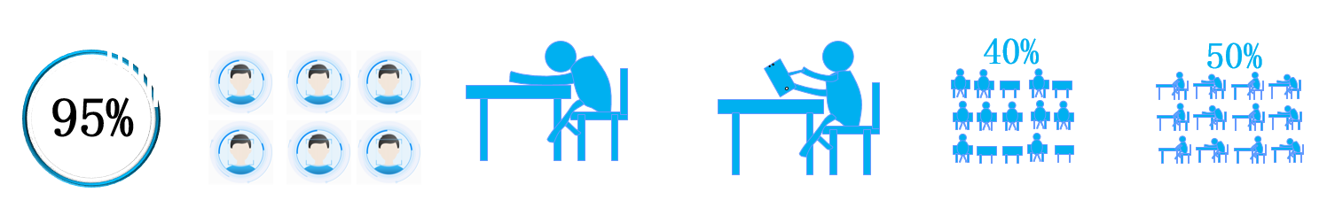 AI無感考勤系統內置多模塊算法,支持人數算法統計出勤率,人臉識別算法統計出勤/缺勤名單,以及趴桌子、玩手機抓拍等功能精準反饋課堂紀律。