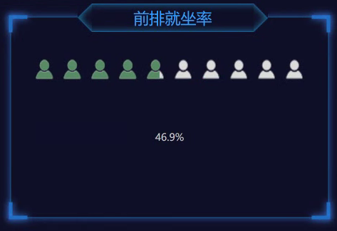 可根據預設的前排座位數自動統計前排就坐人數,并計算前排就座率,同時根據人數總量和座位數計算教室內整體就坐分布:靠前、靠后。